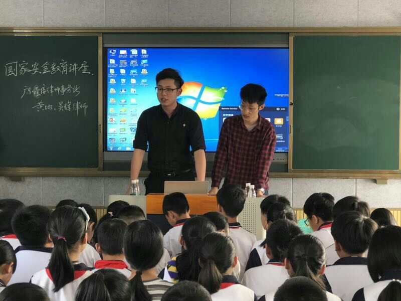 為加強《國家安全法》、《反恐怖主義法》、《反間諜法》、《網(wǎng)絡安全法》等法律宣傳普及,進一步增強小學生的國家安全意識,增強下一代對于國家安全的認識。2019年4月15日下午,大坪農(nóng)場在梅星小學舉行“國家安全教育日普法宣傳活動”,大坪農(nóng)場司法所溫志平副所長,廣東謹信律師事務所黃地律師,大坪農(nóng)場梅星小學鄧錦榮校長出席參加活動,黃地對學生們進行國家安全教育普法宣傳——《國家安全法》專題講座。